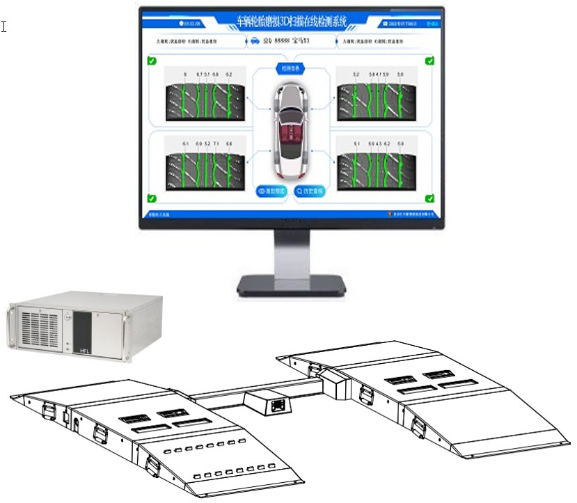 本系統(tǒng)是由北京匯豐隆智能科技有限公司開發(fā)并擁有自主知識(shí)產(chǎn)權(quán)的一款全自動(dòng)化乘用車輪胎磨損3D掃描在線檢測(cè)系統(tǒng)。車主/司機(jī)僅需駕駛車輛從檢測(cè)系統(tǒng)駛過(guò),檢測(cè)系統(tǒng)即可快速、準(zhǔn)確的檢測(cè)出車輛輪胎的磨損狀態(tài)并可在顯示屏或及智能電視上顯示出本次檢測(cè)結(jié)果。檢測(cè)報(bào)告具有精度高、速度快、顯示界面信息齊全等特色。同時(shí),檢測(cè)報(bào)告記錄了被檢測(cè)車輛的車牌及車型信息,便于日后方便準(zhǔn)確查詢及對(duì)比。